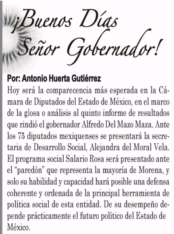 Ante los 75 diputados mexiquenses se presentará la secretaria de Desarrollo Social, Alejandra del Moral Vela.