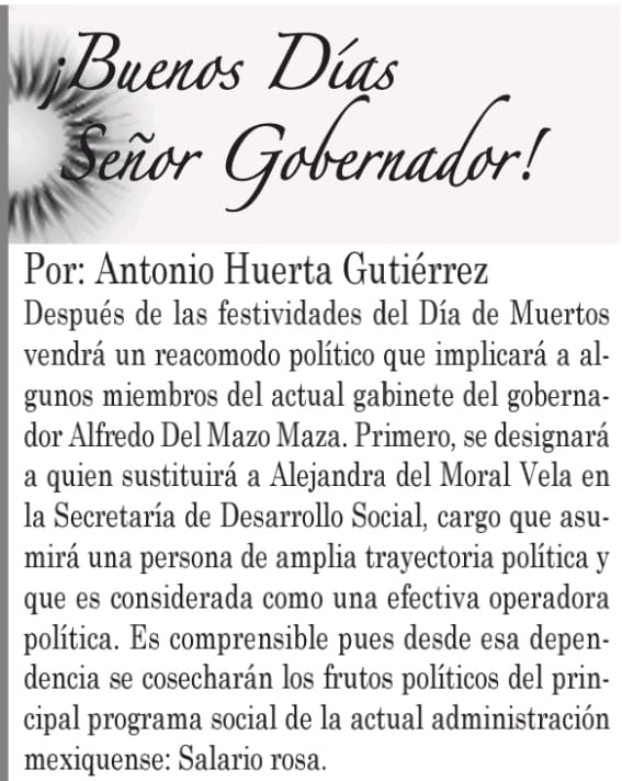 Después de las festividades del Día de Muertos vendrá un reacomodo político que implicará a algunos miembros del actual gabinete del gobernador Alfredo Del Mazo Maza.