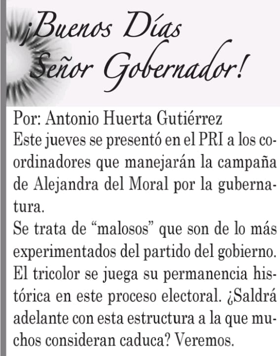 Este jueves se presentó en el PRI a los coordinadores que manejarán la campaña de Alejandra del Moral por la gubernatura.