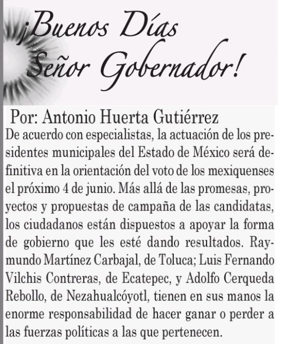 De acuerdo con especialistas, la actuación de los presidentes municipales del Estado de México será definitiva en la orientación del voto de los mexiquenses el próximo 4 de junio.