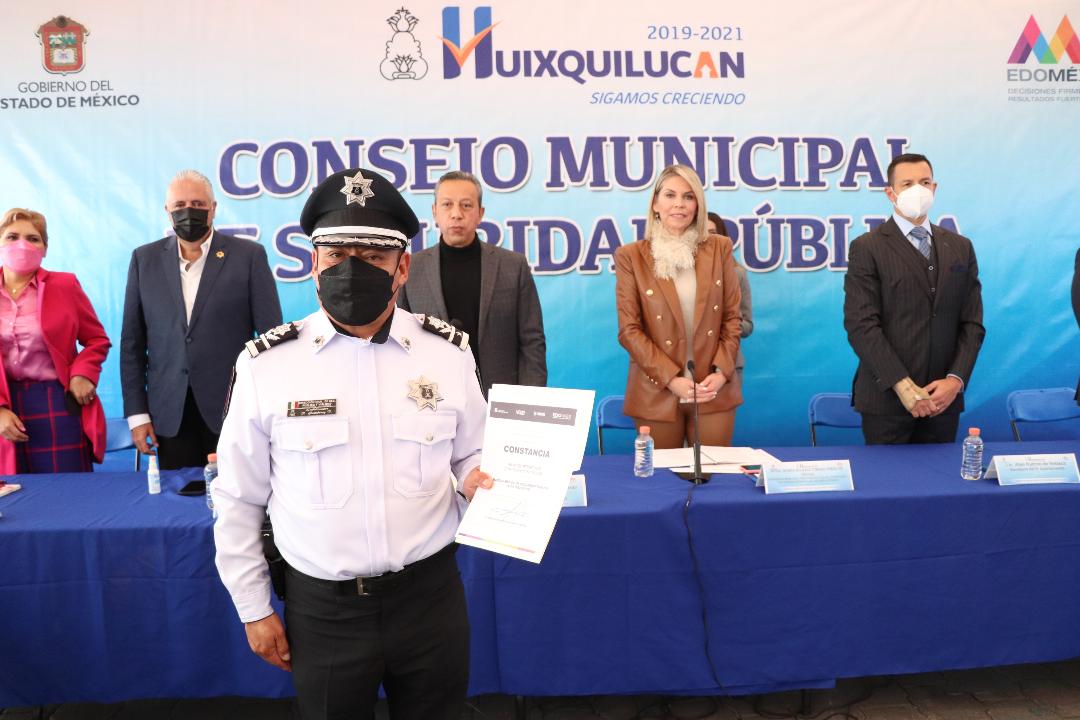Durante este acto, considerado el último en su tipo de la administración municipal 2019-2021, la presidenta municipal por Ministerio de Ley entregó constancias a elementos de la Dirección General de Seguridad Pública y Vialidad, por su destacado desempeño en el Diplomado de Alta Dirección de la Universidad Mexiquense de Seguridad y en la capacitación impartida por la Comisión de Derechos Humanos del Estado de México, en materia de perspectiva de género y uso de la fuerza en materia de protesta social.
