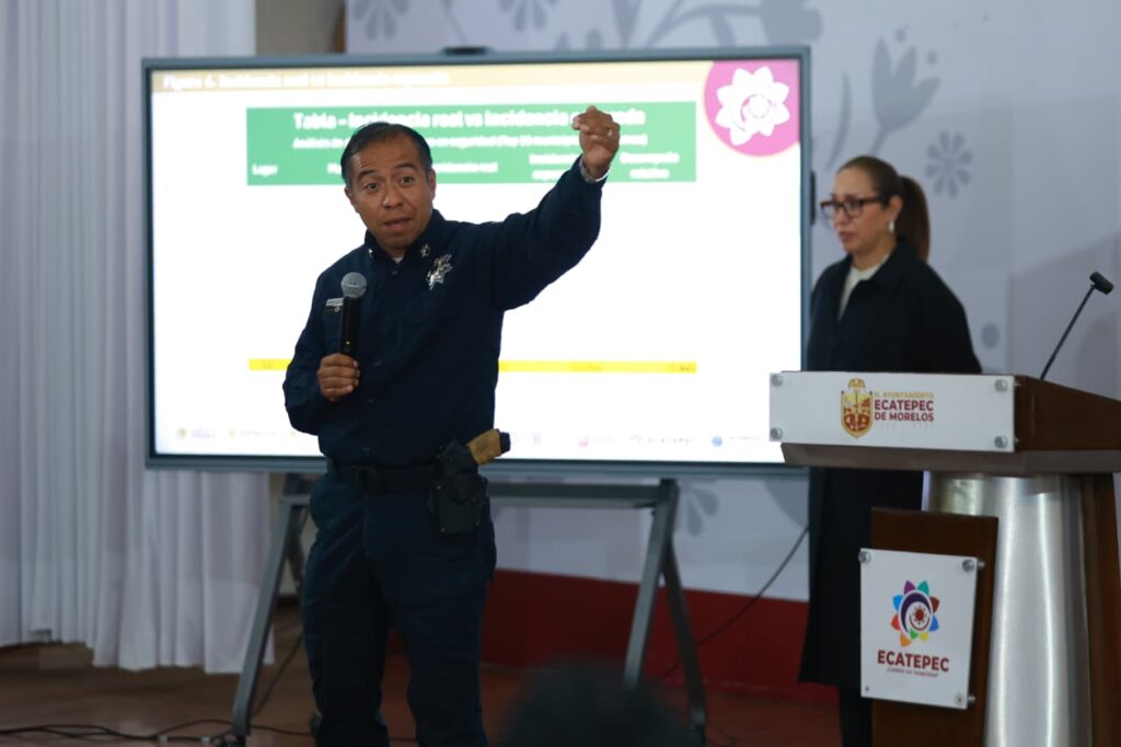 El director operativo de Seguridad Ciudadana y Tránsito Municipal, Edmundo Esquivel Fuentes, detalló que de enero a noviembre del año pasado se registraron en Ecatepec 31 mil 512 delitos, equivalentes a mil 915 ilícitos por cada 100 mil habitantes, cifra que lo coloca por debajo de otros municipios como Toluca, Chalco y Cuautitlán Izcalli, además de reportar reducciones relevantes en homicidio doloso, robo de vehículo, extorsión y robo a transeúnte en el arranque de 2026.