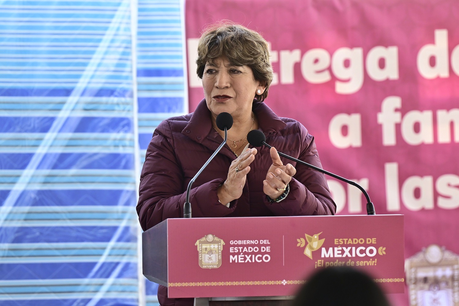 “Hoy en ese proceso de entrega de apoyos, se hace precisamente la entrega paquetes de enseres domésticos que incluyen colchón, bases para cama matrimonial e individual, estufa lavadora, refrigerador y licuadora para más de mil 800 familias”, afirmó la Gobernadora Delfina Gómez Álvarez.