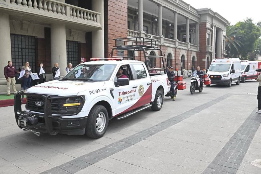El alcalde Raciel Pérez encabezó la entrega de vehículos a la Dirección de Protección Civil y Gestión Integral de Riesgos, Servicios Públicos y Mantenimiento Urbano, así como a Sustentabilidad Ambiental. Las nuevas unidades ya fueron puestas en operación para atender de inmediato las necesidades en comunidades de Tlalnepantla.