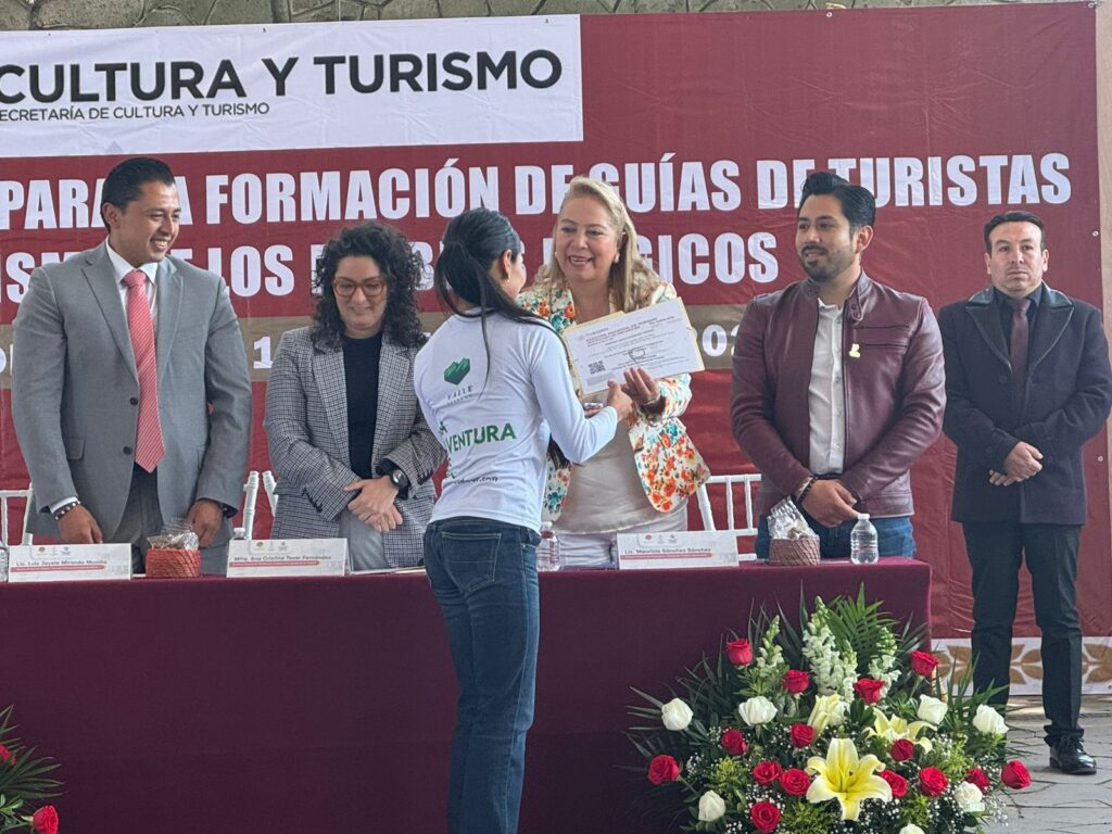 La Presidenta Municipal destacó que contar con guías capacitados es fundamental para difundir la riqueza histórica, cultural y natural del municipio, así como para ofrecer a los visitantes recorridos seguros, informativos y de alta calidad.